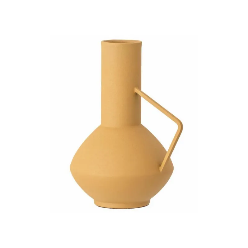 Découvrez ce vase en métal couleur jaune de Bloomingville avec une finition rugueuse.Vous pourrez le positionner avec d’autres accessoires de maison pour un look parfait et moderne.