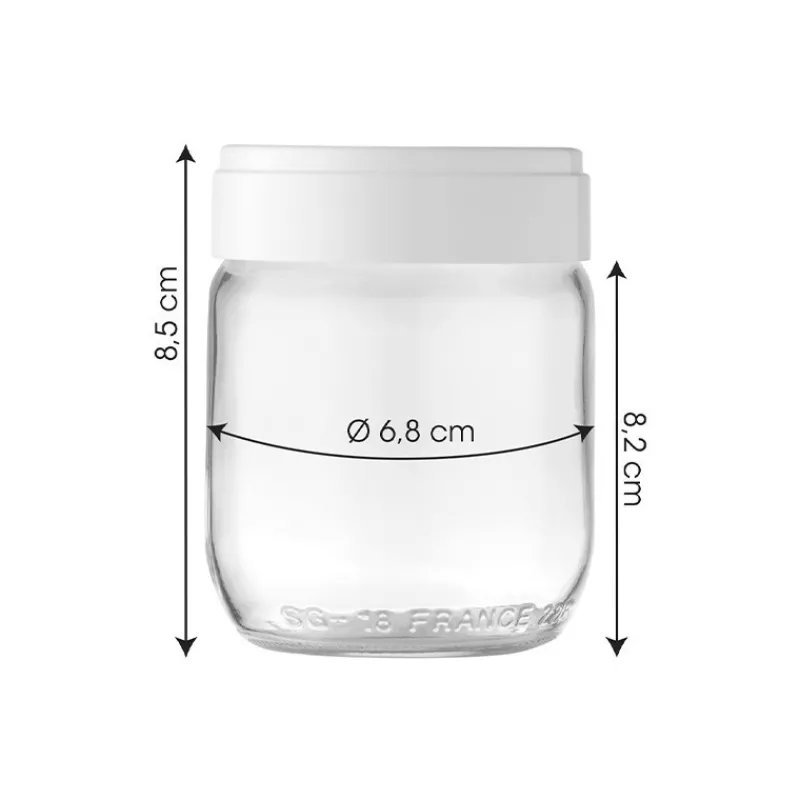 Les pots sont en verre, matériau durable choisi pour ses excellentes qualités sanitaires et sa transparence. De grande capacité, ils vous permettront d’exprimer toute votre créativité : ajoutez des fruits, des céréales, des pépites de chocolat, de la crème de marron… Laissez parler votre imagination pour inventer des yaourts uniques, pour régaler petits et grands.